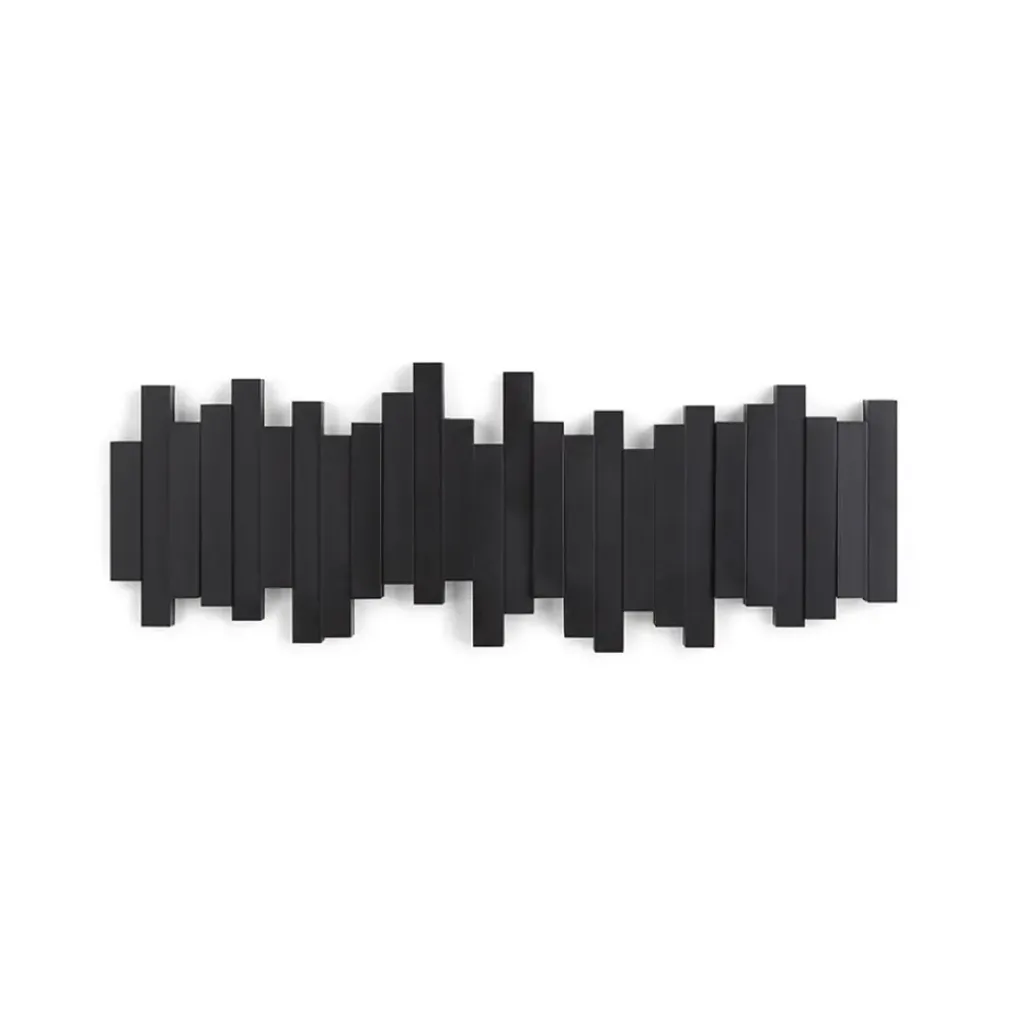 PATERE – Patère murale pratique avec 5 crochets noirs rabattables, idéale pour accrocher vos affaires avec style.Acajou blanc