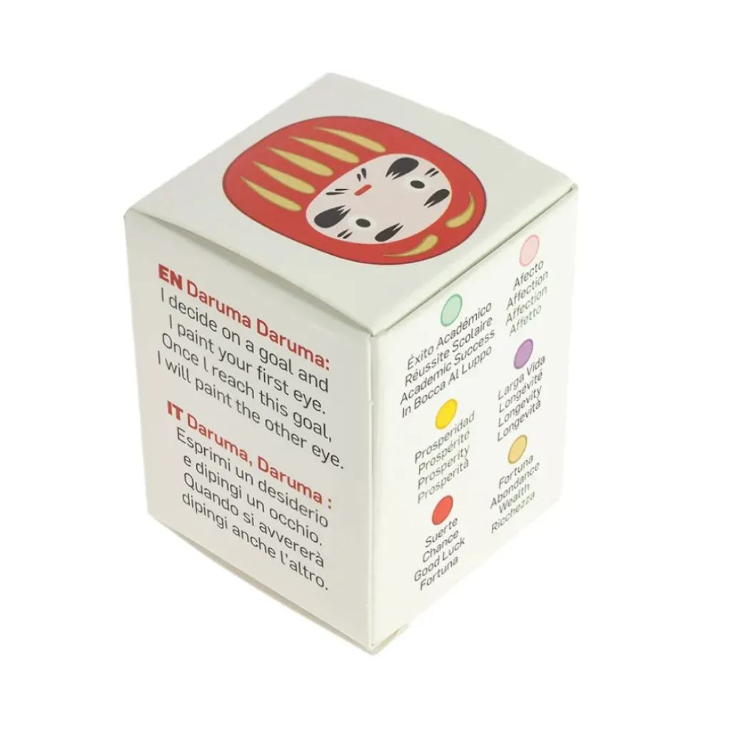 Le Daruma rouge, avec sa forme ronde et ses yeux vides à remplir au gré de vos souhaits et objectifs, vous encourage à poursuivre vos rêves et à ne jamais perdre de vue votre chemin.