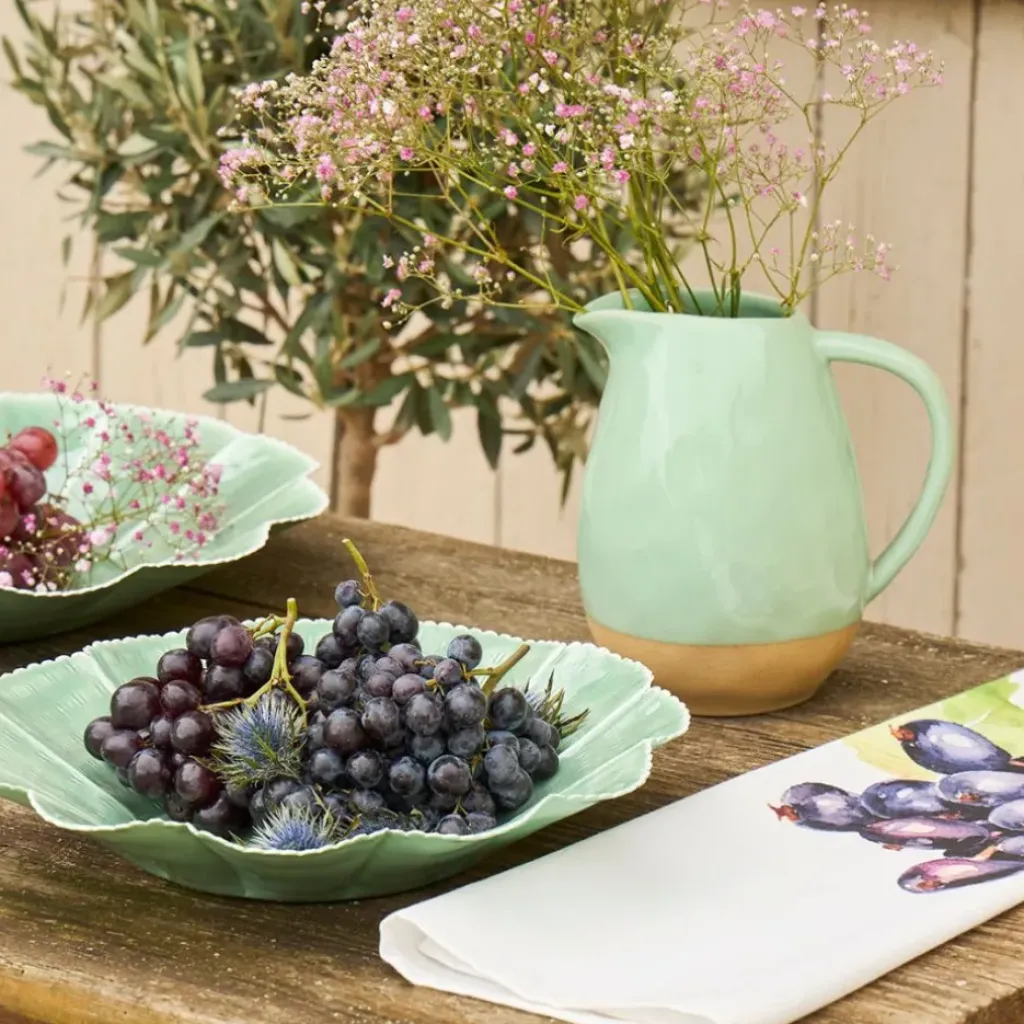 Découvrez le pichet en grès vert d’eau Jade, parfait pour servir vos boissons préférées avec style.