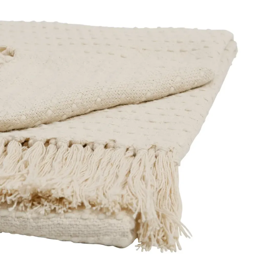 Notre plaid blanc 170x130cm, confectionné à partir de coton mélangé avec de l’acrylique, incarne la douceur et le bien-être.