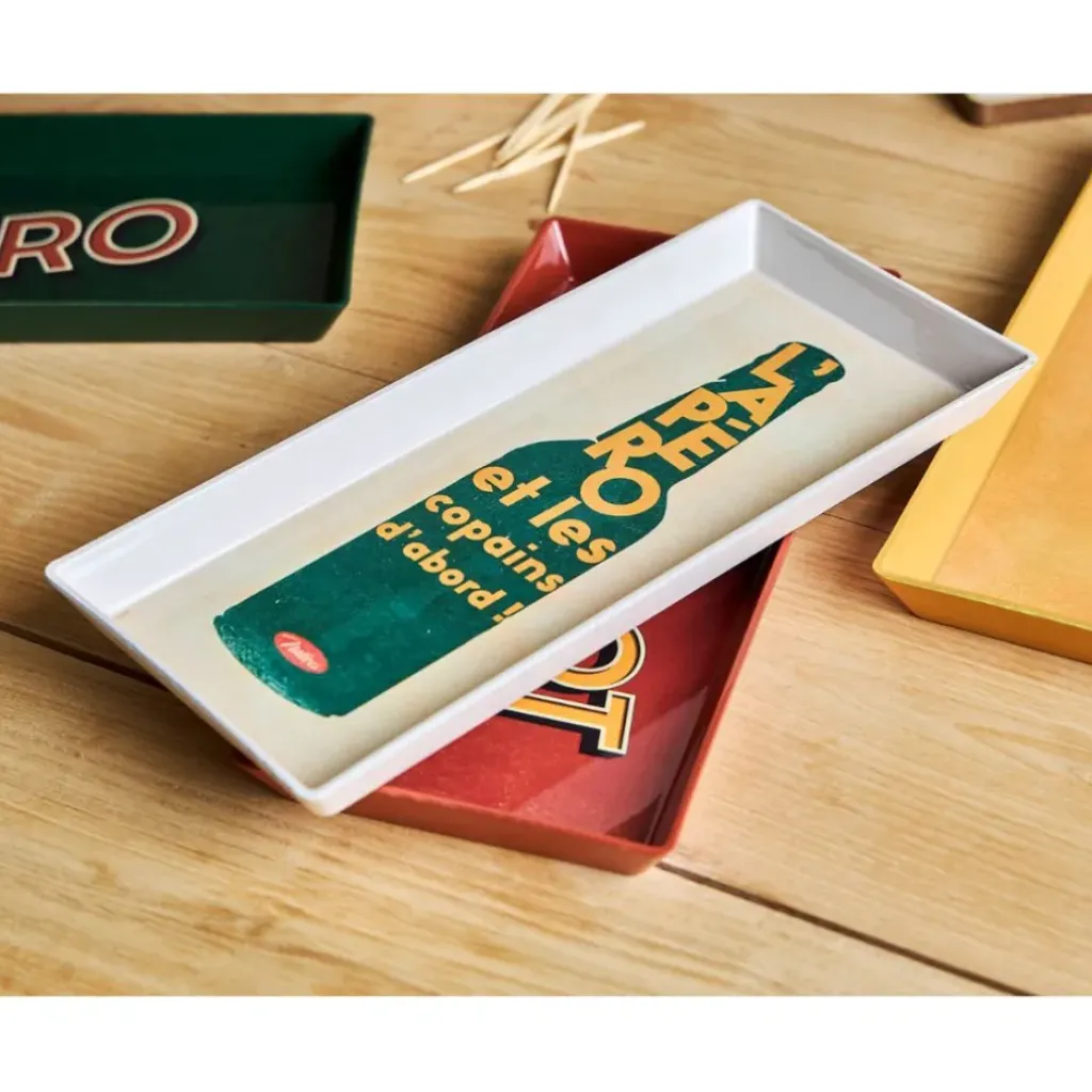 Découvrez le plateau en tissu synthétique beige et vert 26x11cm de la collection Copains D’Abord.