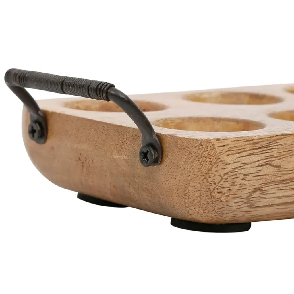 rFabriqué en manguier et en fer naturel, ce porte-œufs est à la fois robuste et esthétique.