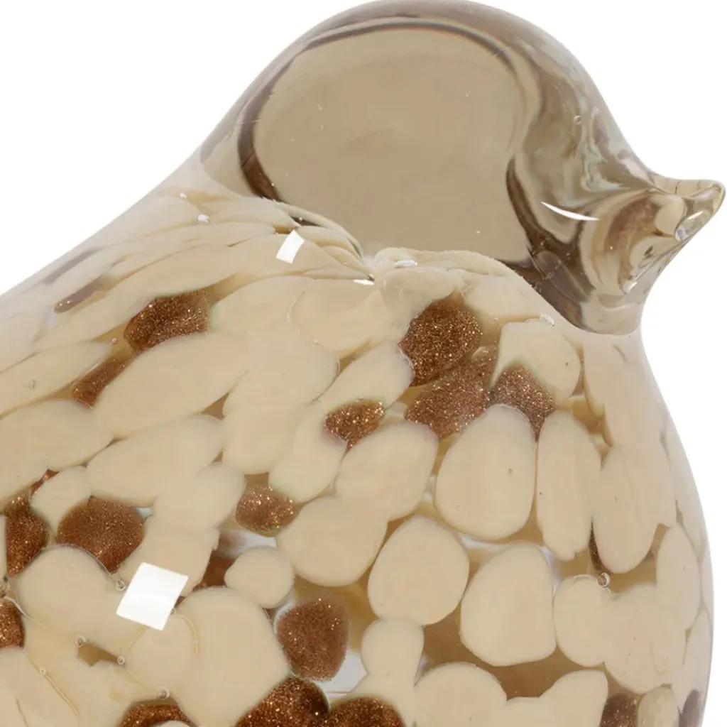 Le corps du moineau, en verre beige, est subtilement orné de détails dorés, créant un effet visuel attrayant et apaisant.