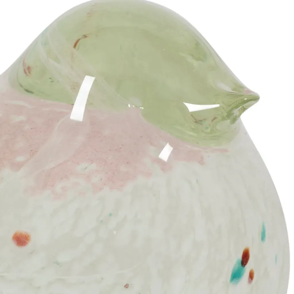 Ajoutez une touche de charme à votre espace de travail avec ce presse-papier moineau en verre vert et rose – Serin.