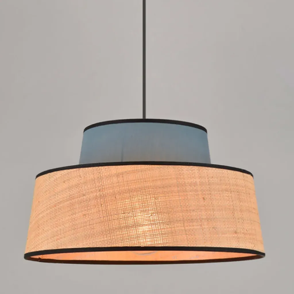 Suspension composée de 2 coniques : 1 petit en coton et le plus grand en matière naturelle raphia.