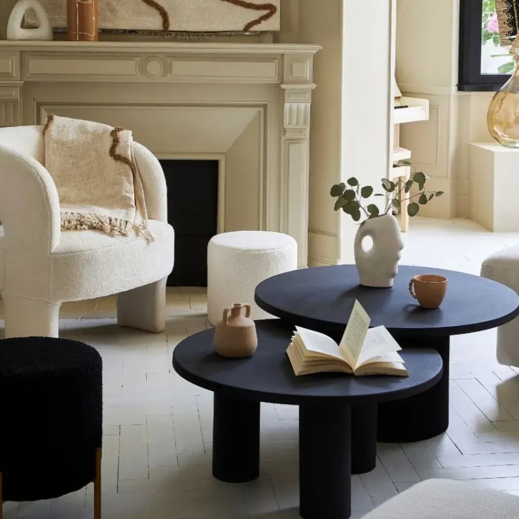 Découvrez notre magnifique table basse ronde en fer noir Organic pour ajouter une tocuhe contemporaine et minimaliste à votre salon.
