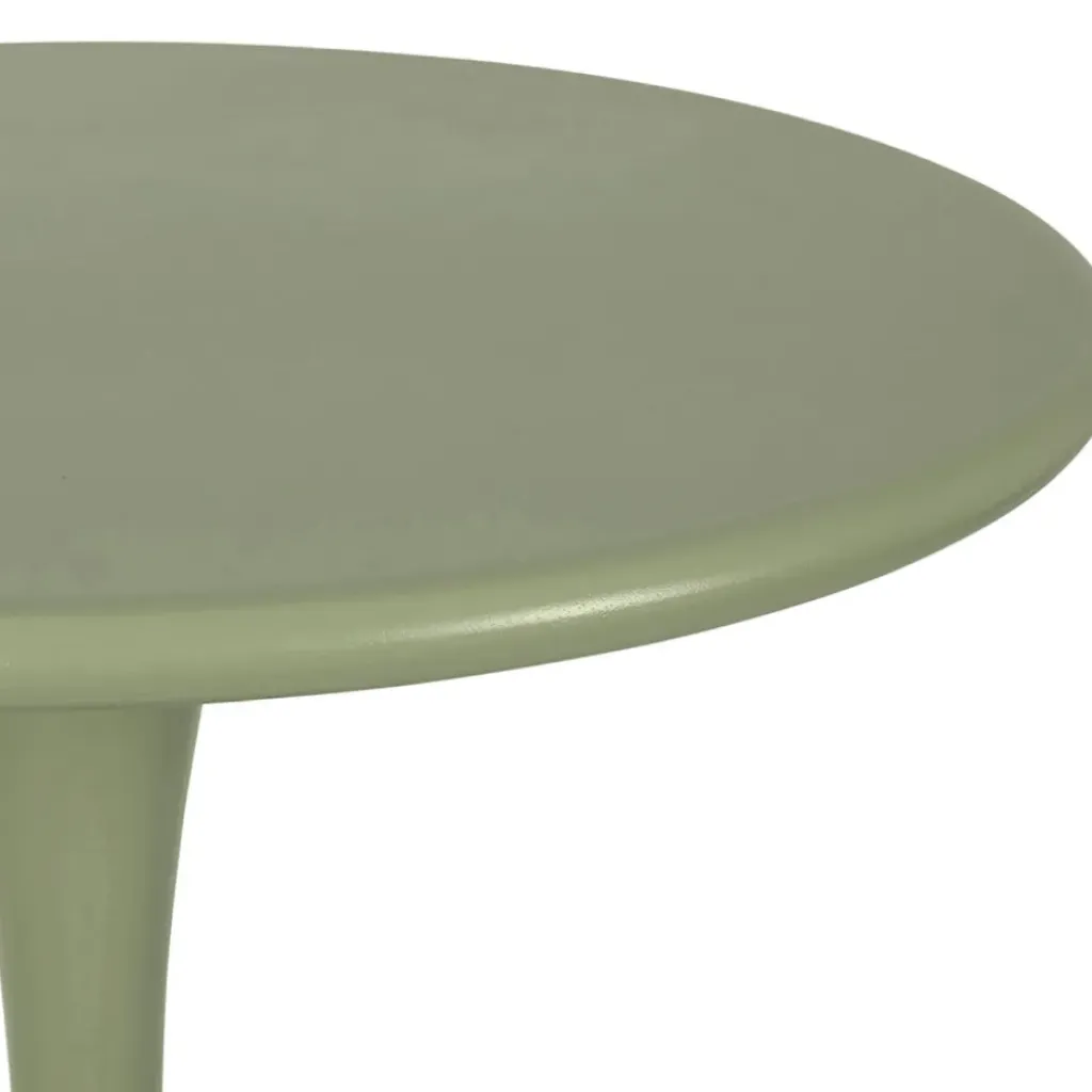 La table est réalisée en fer de couleur kaki, ce qui lui confère une résistance aux intempéries et une longévité remarquable.