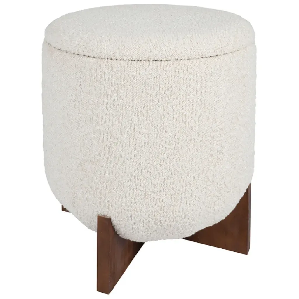 Découvrez le tabouret coffre en tissu et pin blanc – Alpinia, un allié astucieux pour optimiser votre espace de vie.
