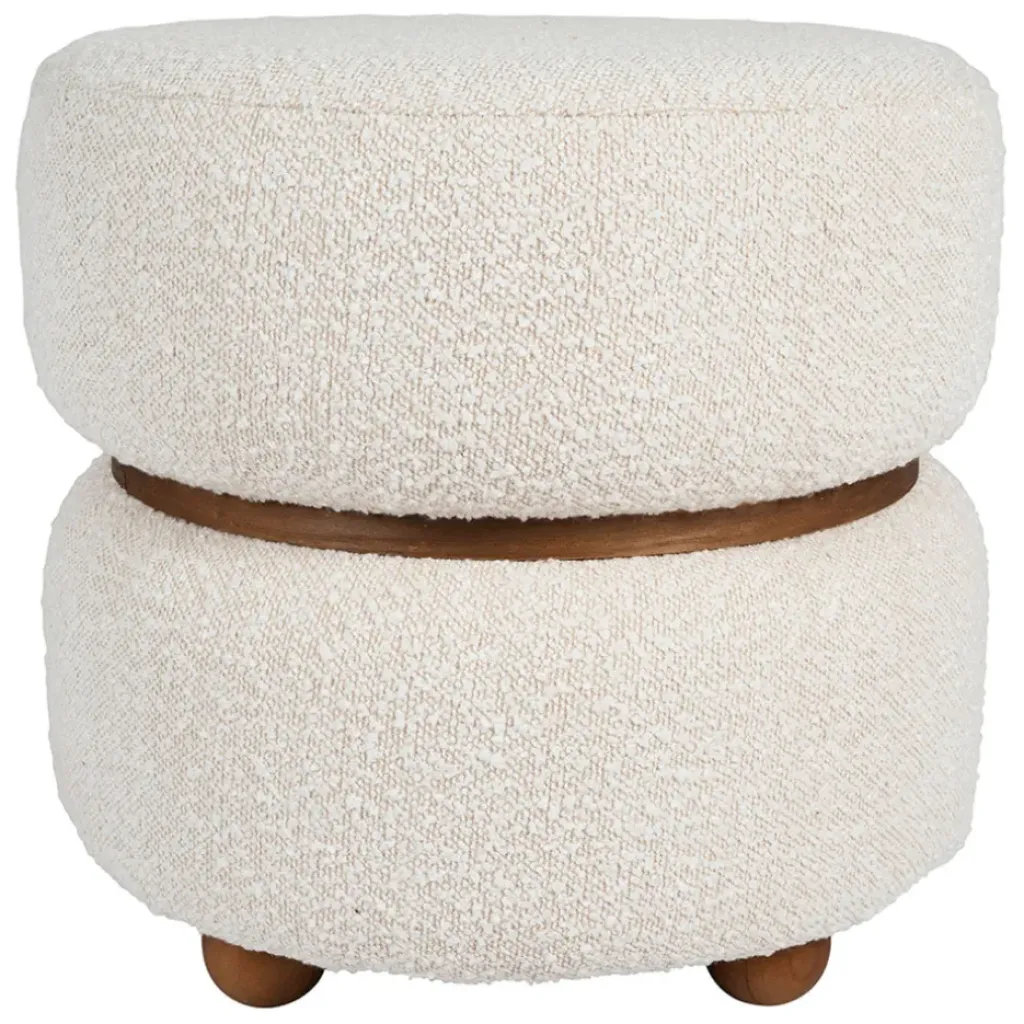 Le tabouret en tissu et pin blanc séduit par son allure naturelle et ses lignes épurées.