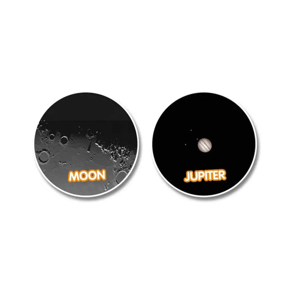 Son objectif de 50mm et sa focale de 360mm grossisent jusqu’à 60 fois, vous offrant une vision claire des cratères lunaires, des anneaux de Saturne, et même des galaxies lointaines.