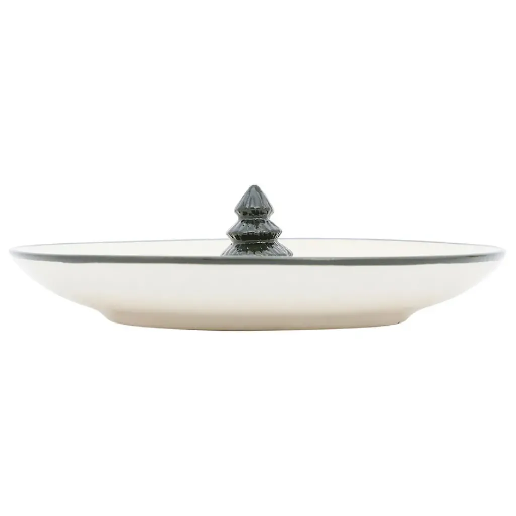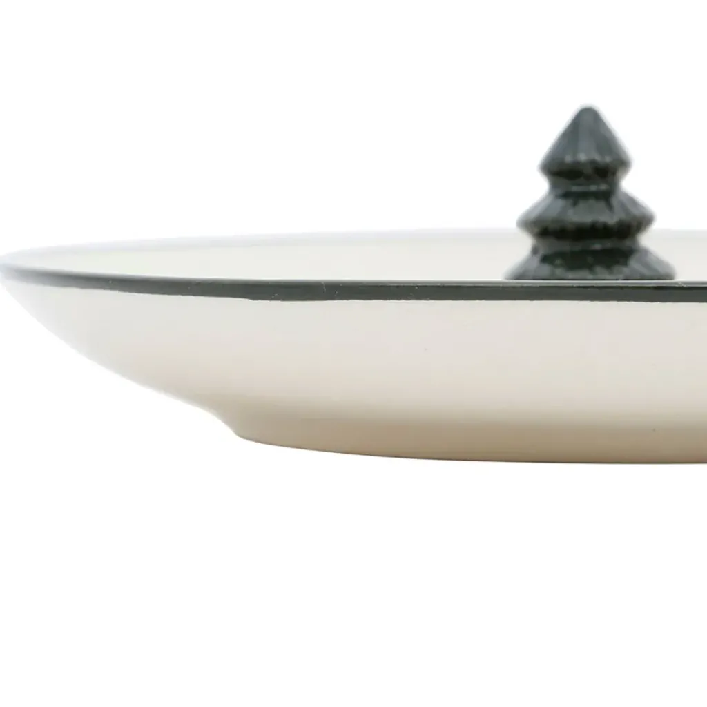 Ajoutez une touche d’élégance fonctionnelle à votre espace avec le vide-poche « Mon Sapin » en grès écrue et vert.