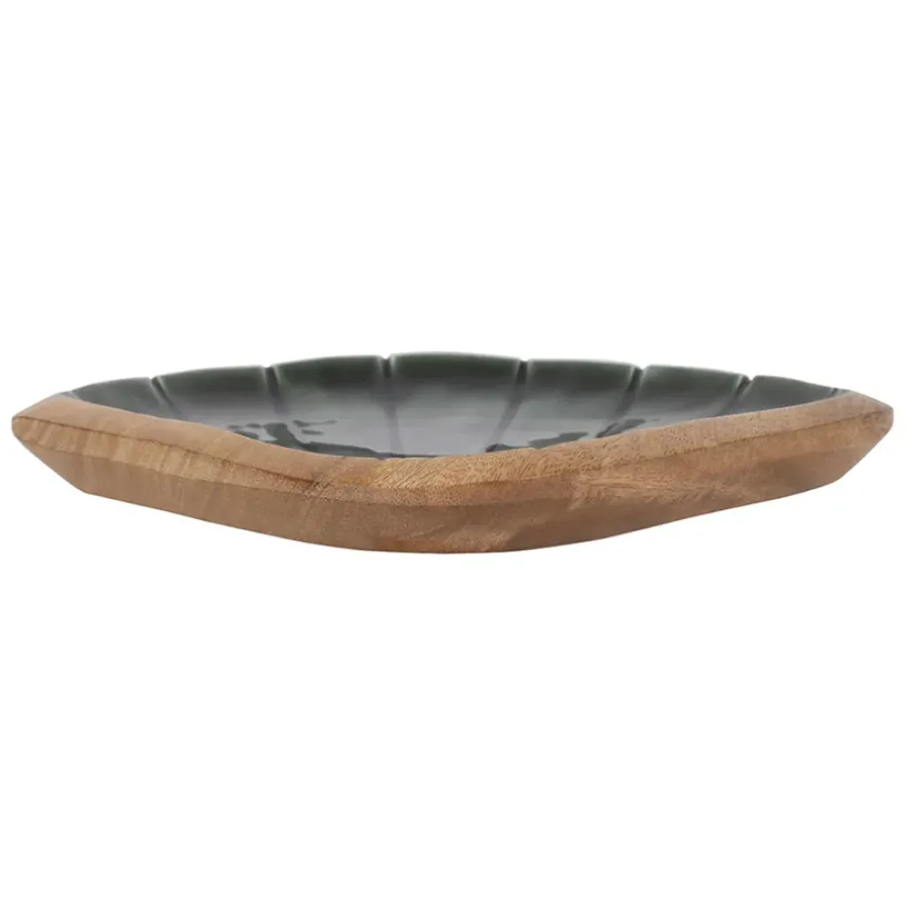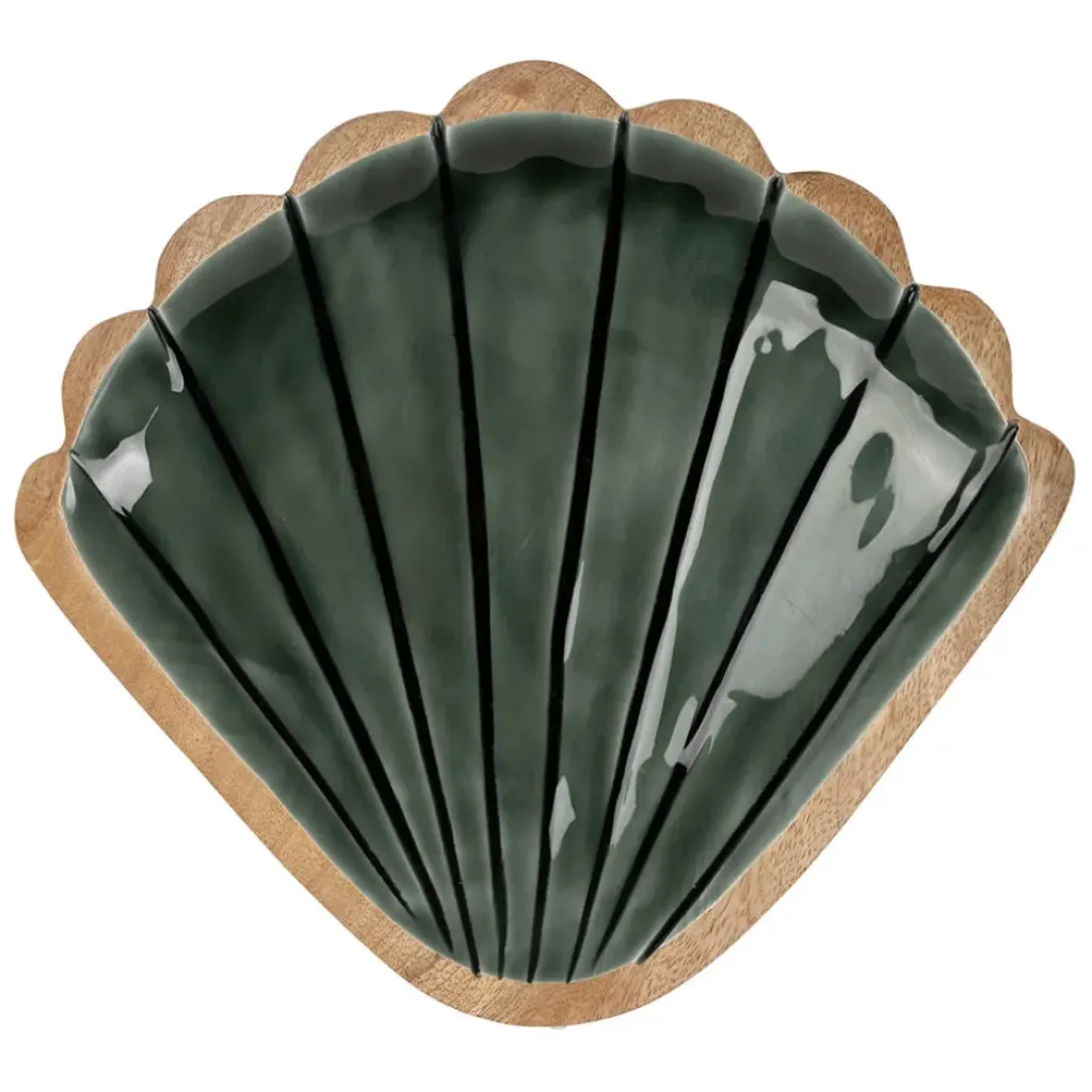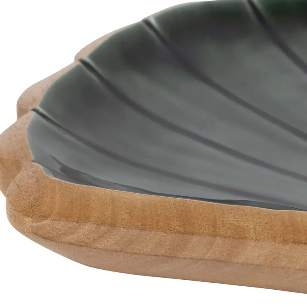 Fabriqué en manguier émeraude, ce vide-poche se distingue par sa forme unique en coquillage.